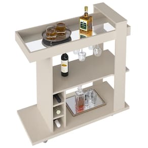 O Carrinho bar é ideal para quem valoriza organização e funcionalidade na hora de montar um cantinho especial em casa. Produzido em MDP de 15 mm, tampo espelhado, 6 porta taças metálicos, 3 nichos para garrafas, 1 prateleira e rodízios com travas em plástico ABS. O carrinho suporta até 8 kg (tampo 2kg, prateleira 2kg e estrutura 4kg). Além do seu acabamento com pintura UV texturizada de longa durabilidade e fácil limpeza. Este móvel chegará em sua casa separado em 01 volume.