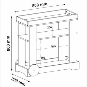 Detalhes em Rodas: Rodízios que facilitam o deslocamento do carrinho, proporcionando mobilidade e versatilidade para o seu espaço.