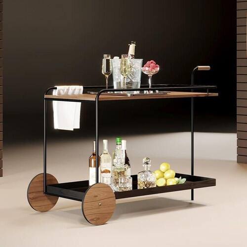 Madeira maciça e metalCarrinho Bar Industrial Moderno - Agnes - Móveis Montanhês