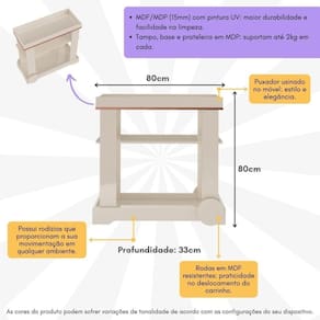 Altura: 80cm | Largura: 80cm | Profundidade: 33cm