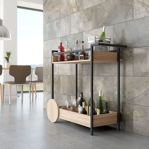 Carrinho Bar Onix Ambiente Principal Escritório Preto /Amadeirado