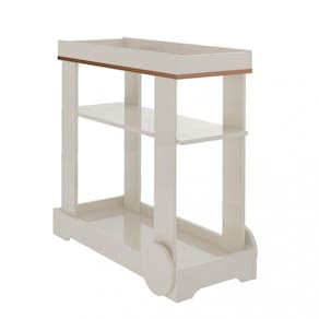 Características: Fita de borda metalizada no tampo 1 Prateleira central Rodízios Tampo, Laterais e Prateleira em MDP 15mm Roda decorativa em MDF 15mm Rodapés em MDF 15mm