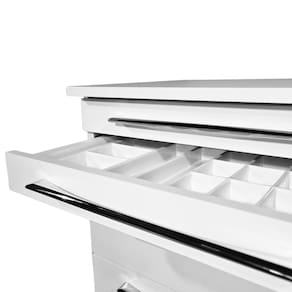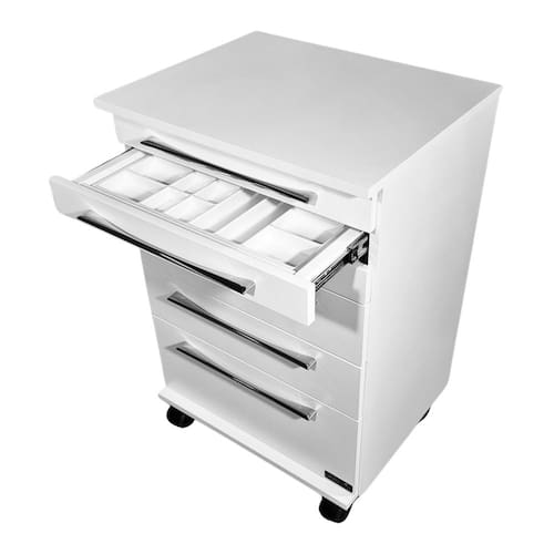 5 (cinco) gavetas. Ter cinco gavetas em uma mesa auxiliar oferece um excelente aproveitamento de espaço, permitindo a organização eficiente de materiais e documentos. As gavetas proporcionam fácil acesso a itens essenciais, mantendo o ambiente arrumado e funcional. Além disso, essa quantidade de compartimentos facilita a separação de diferentes categorias de objetos, promovendo maior praticidade no dia a dia e otimizando o tempo de trabalho em consultórios e clínicas.
