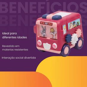 Estimula o Desenvolvimento Cognitivo: As cores vivas e os detalhes interativos ajudam a desenvolver habilidades motoras e sensoriais das crianças, tornando a brincadeira uma experiência educativa Interatividade com Personagens Queridos: As imagens dos personagens como Pernalonga, Piu-Piu e outros clássicos dos Looney Tunes fazem da brincadeira uma viagem ao mundo da imaginação