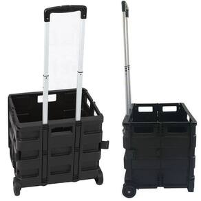 Dobrável, espaçoso para usar e compacto para guardar Estrutura em pp, durável e resistente 02 rodas de alta resistência e aderência Carrinho cesto compras portátil multiuso dobrável preto