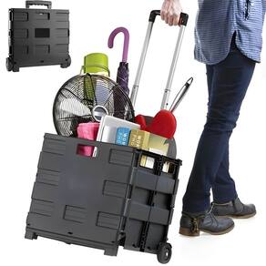 Carrinho Cesto Compras Portátil Multiuso Dobrável Preto