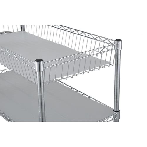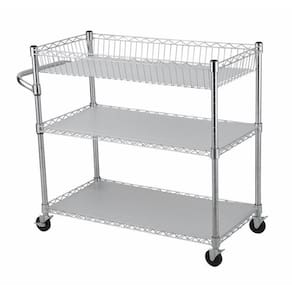 Carrinho de aço cromado durável de ótima qualidadeSuporta até 226 kilos de cargaRodas sólidas de 10,16 cmPVC resistente3 Prateleiras ajustáveisCobertura das prateleiras em polipropilenoMedidas: 90 cm C x 45 cm P x 90 cm AKit contendo:CarrinhoJogo de rodízios3 forros em PVCMarca: Maxime Utilidades