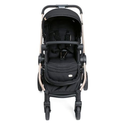 Sustentável e elegante O acabamento premium em preto e dourado traz toda elegância que os pais merecem. Seu tecido é produzido com material reciclado, tornando-o um carrinho completo e sustentável. Tudo isso sem abrir mão da segurança e conforto do seu bebê.
