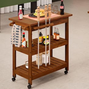 Fazer aquele churrasco de primeira é sem dúvida um dos melhores momentos para reunir família ou os amigos! Desta forma, ter um carrinho auxiliar de churrasco é super importante para servir refeições, acompanhamento ou bebidas com higiene e praticidade sem preocupações. Possui amplo espaço para armazenamento de acessórios ou condimentos em sua gaveta e suas prateleiras, suporte de espeto e suporte de talheres grandes. Sem abrir mão da beleza, o carrinho gourmet possui uma tábua de cortes móvel que o deixa ainda mais prático e contribui com a decoração da área de churrasco ou cozinha. Com ele a sua área gourmet está preparada para aquele final de semana!