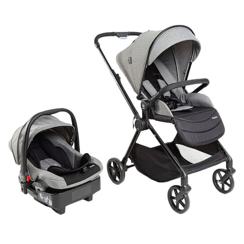 Conjunto de carrinho, bebê conforto e base veicular, para mais praticidade nos deslocamentos com a criança.