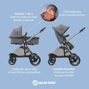 Acompanha adaptadores para bebês conforto Maxi-Cosi