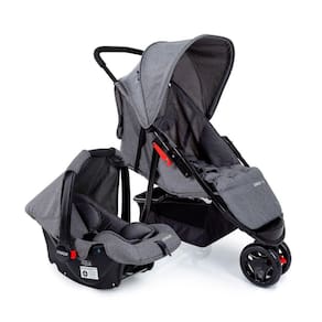 Carrinho aprovado pelo INMETRO conforme a norma ABNT NBR 14.389 para crianças do nascimento aos 15kg. Bebê conforto aprovado pelo INMETRO conforme a norma ABNT NBR 14.400 para crianças do nascimento aos 13kg (Grupo 0+).