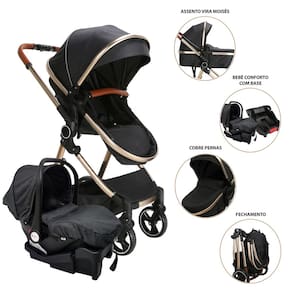 Carrinho com Bebê Conforto TS Mike Preto/Gold Premium Baby