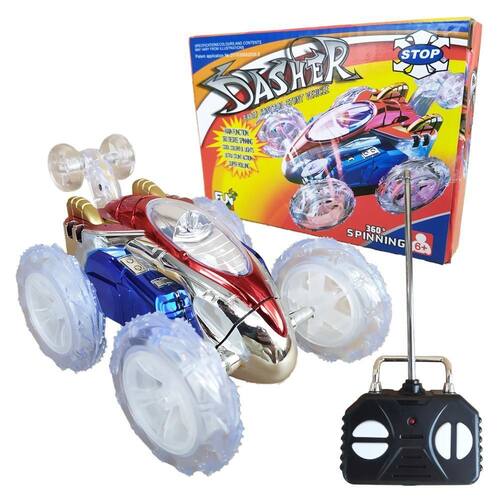 Um super carro esperto e divertido, o giro de 360º das rodas dianteiras permite que o carrinho faça diversas manobras incríveis, possui luzes em led nas rodas para deixar a brincadeira ainda mais divertida. O carro possui 4 canais para melhor comandar frente , trás, direita e esquerda .