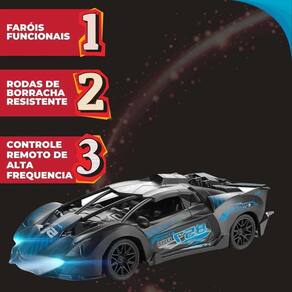 Características Design esportivo inspirado em modelos bugatti Faróis funcionais que acendem durante o uso Controle remoto de fácil manuseio com 4 funções Estrutura robusta com pneus de borracha resistentes Ideal para estimular coordenação motora e criatividade Recarregável, acompanha bateria e cabo