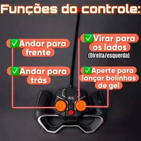 carrinho controle remoto recarregável bateria tanque bolinha de gel 180 water bomb
