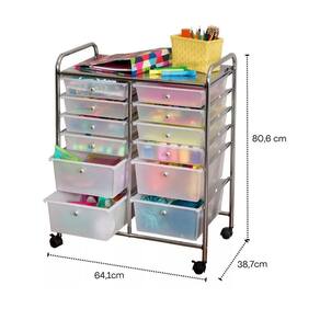 Carrinho Cromado com 12 gavetas Cor: Transparente Organizar o ambiente, seja sua casa, ambiente de trabalho, loja, sala de aula, multiuso