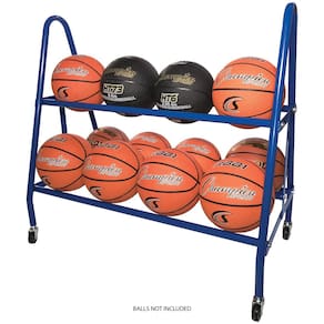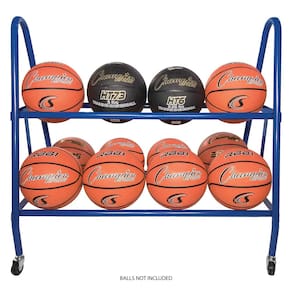 Carrinho de armazenamento para basquete Champion Sports com duas camadas e rodas giratórias, capacidade para 12 bolas (azul).