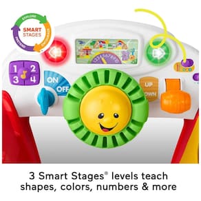 Centro de atividades com tema de carro: Estacionário e projetado para estimular o desenvolvimento em diferentes fases, com diversão garantida enquanto o bebê explora. 3 níveis de aprendizado Smart Stages: Mais de 120 músicas, sons, melodias e frases que ensinam formas, cores, alfabeto, números, opostos e muito mais. Painel interativo: Ativa luzes, músicas e sons enquanto o bebê gira o volante, troca as marchas, gira a chave, buzina, usa as setas de direção e "liga" o rádio. Diversão com peças educativas: Inclui uma rampa embutida com 3 bolas para brincar, além de uma porta de formas e cores com 3 blocos para encaixe. Estímulo ao desenvolvimento: Ajuda a fortalecer habilidades motoras grossas e incentiva o faz de conta desde cedo, ideal para bebês e crianças de 6 a 36 meses. Um brinquedo completo que une aprendizado e diversão, perfeito para estimular a imaginação e o desenvolvimento do seu pequeno explorador!