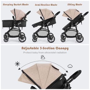CONFORTÁVEL E ADAPTÁVEL Este carrinho possui encosto e alça ajustáveis. Você pode ajustar a parte de trás do carrinho para atender aos diferentes requisitos do seu bebê, seja para deitar, sentar ou dormir. O assento confortável com arnês de segurança de 5 pontos e almofada de dormir ajustável em inclinação, oferece conforto e segurança para o seu bebê. Além disso, a alça de empurrar tem conversões bidirecionais, permitindo que você possa optar por enfrentar o seu bebê conforme sua conveniência.