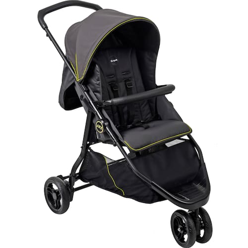 O CR3 possui 3 rodas, protetor frontal com acabamento externo em couro com um toque macio e confortável, amortecedores, encosto que reclina em 4 posições, capota regulável e removível, cinto de segurança de 5 pontos, rodas dianteiras giratórias, freio traseiro conjugado e cesto porta-objetos.