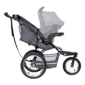 O Carrinho de Bebê Baby Trend Expedition Jogger foi desenvolvido com estilo e segurança para você e seu filho. Possui uma bandeja para os pais com 2 porta-copos e compartimento de armazenamento coberto, além de um cabo de borracha ergonomicamente larga para manuseio confortável. A bandeja da criança conta com 2 porta-copos para manter bebidas e lanches à mão, e também aceita os assentos de carro para bebês Baby Trend EZLift, transformando-se em um sistema de viagem. O carrinho inclui um arnês de 5 pontos e um toldo giratório com viseira ajustável para proteger seu filho. Possui uma cesta de armazenamento conveniente sob o assento, oferecendo amplo espaço para transportar mamadeiras ou outros itens essenciais para o bebê. O carrinho se dobra facilmente em uma unidade compacta para fácil armazenamento. Sua roda dianteira gira para fácil manobrabilidade e também pode ser travada para oferecer um desempenho em linha. Os pneus para bicicleta todo-terreno, a cesta de armazenamento extra larga e os refletores no apoio para os pés proporcionam maior visibilidade em condições de pouca luz.