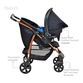 Este lindo conjunto travel da Burigotto é composto por Carrinho + bebê conforto. Prático, seguro e com design moderno, ele é indicado desde recém nascido até crianças de 15kg. Seu encosto é reclinável em 4 posições e seu bebê poderá dormir confortável. Tranquilidade para os pais e conforto para o bebê!