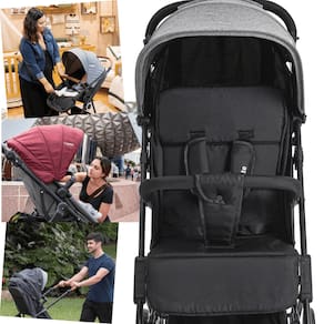 O modelo é indicado para recém-nascidos até 15 kg e possui funções berço e passeio. Conta com estrutura em aço, sistema de fechamento central com acionamento “one hand”, encosto reclinável em múltiplas posições, apoio para pernas articulável, capota retrátil com visor e proteção UV FPS 50+, além de tela traseira para ventilação interna. Seu fechamento é compacto, facilitando o armazenamento e o transporte. Quando fechado, ocupa pouco espaço, sendo adequado para porta-malas reduzidos.