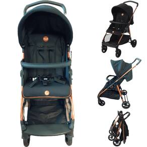 O modelo possui encosto reclinável em quatro posições, capota regulável e removível, cinto de segurança de cinco pontos, protetor frontal removível, rodas dianteiras giratórias, freio traseiro conjugado e cesto porta-objetos.