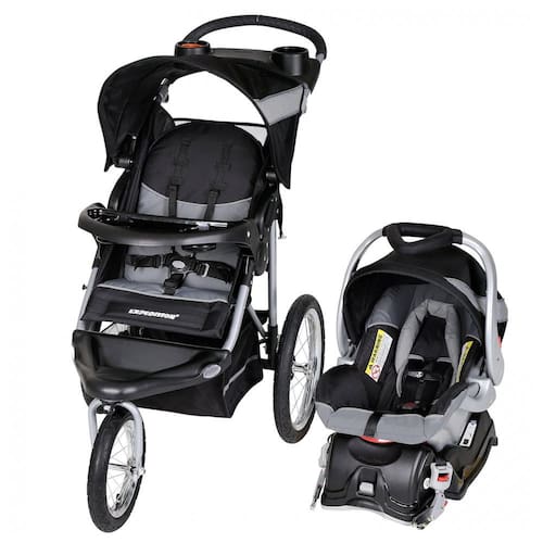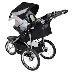 Carrinho Construção de aço leve Roda giratória dianteira bloqueável para facilidade de manobra Pneus de bicicleta todo o terreno A conveniente bandeja dos pais inclui dois porta copos e um compartimento de zenamento coberto Alça acolchoada de espuma extra larga e ergonômica Capota ajustável com catracas de teto solar cobertas para bloquear o sol e o vento A dobra do gatilho sem esforço reduz facilmente o carrinho a uma unidade compacta Assento acolchoado, reclinável e multiposições Arnês de segurança de 5 pontos totalmente ajustável e cinta de amarração Os refletores no apoio para os pés proporcionam maior visibilidade com pouca luz