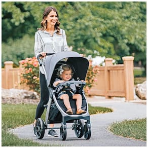 Para viagens infantis leves, o Bravo possui um dossel removível e um assento infantil, convertendo o convenientemente em um suporte de estrutura de assento de carro simplificado. O carrinho versátil aceita todas as cadeirinhas infantis Chicco vendidas separadamente através da bandeja infantil sem a necessidade de adaptador.
