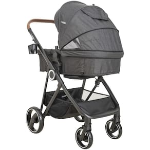 Carrinho travel system Carrinho berço, passeio e moisés. Estrutura em aço. Sistema de fechamento em formato Z. Leve e fácil de carregar e guardar. Cinto de segurança de 5 pontos. Capota retrátil com extensão, visor, viseira e proteção UV FPS 50+. Telas laterais na capota para melhor visualização. Encosto reclinável em multi-posições. Assento reclinável em 3 posições. Transforma-se em moisés. Assento reversível. Extensão do assento articulável. Cesto porta-objetos. Limite de peso: carrinho 15 kg / cesto 2 kg.