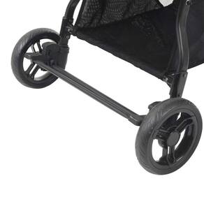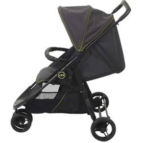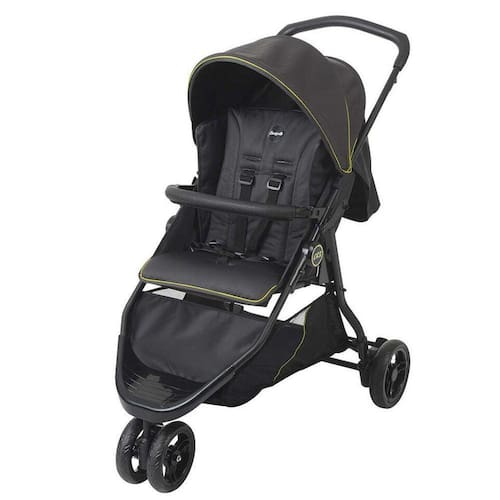 Características técnicas: Protetor frontal com acabamento externo com um toque macio e confortável Amortecedores nas rodas dianteiras giratórias Encosto regulável em 4 posições Capota regulável e removível Freio traseiro conjugado Amplo cesto porta-objetos Cinto de segurança de 5 pontos Trava para fechamento