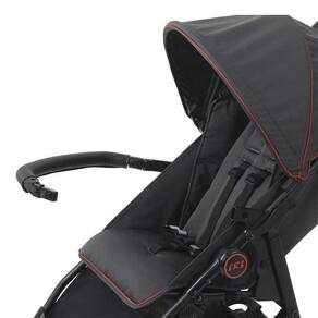 Características Técnicas: Protetor frontal com acabamento externo com um toque macio e confortável Amortecedores nas rodas dianteiras giratórias Encosto regulável em 4 posições Capota regulável e removível Freio traseiro conjugado Amplo cesto porta-objetos Cinto de segurança de 5 pontos Trava para fechamento