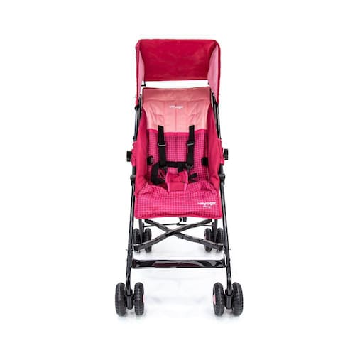 Com duas posições de inclinação, proporciona conforto para o bebê, a capota protege do sol e pode ser recolhida quando quiser, para segurança da criança possui cinto de 5 pontos com ajuste de altura e largura, as 4 rodas são duplas para maior estabilidade e freio interligado.
