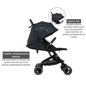 Características Técnicas: Peso recomendado: 0 a 15 kg Cinto de segurança de 5 pontos Encosto ajustável Rodas duplas Capota estendida com visor Travel system 3 em 1