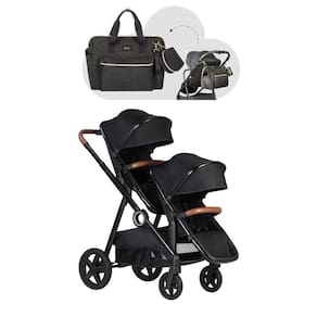 Há a possibilidade de acoplar moisés e bebê conforto à sua estrutura, totalizando mais de 11 combinações entre assentos principais e peças avulsas (moisés e bebê conforto vendidos separadamente). Inclui 3 posições de recline para cada assento, tornando-o um ótimo carrinho para gêmeos e irmãos de idade próxima.