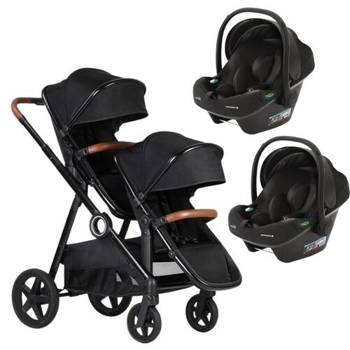 Há a possibilidade de acoplar moisés e bebê conforto à sua estrutura, totalizando mais de 11 combinações entre assentos principais e peças avulsas (moisés e bebê conforto vendidos separadamente). Inclui 3 posições de recline para cada assento, tornando-o um ótimo carrinho para gêmeos e irmãos de idade próxima.