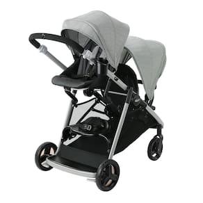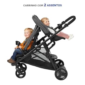 O Ready2Grow inclui duas posições de assento, que podem acomodar dois assentos infantis Graco ao mesmo tempo, tornando-o um ótimo carrinho para gêmeos e irmãos de idade próxima. Além disso, remova o banco traseiro e converta-o facilmente em um banco ou uma plataforma de pé para o seu filho mais velho andar. O assento traseiro próximo a você oferece uma conexão mais próxima com o bebê, enquanto o assento inferior tem a altura certa para facilitar a entrada e saída do bebê.