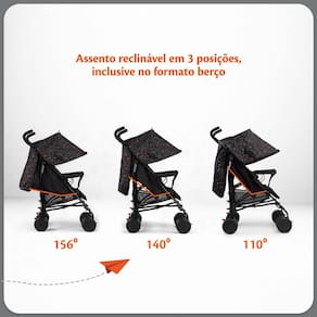 Assento reclinável: Três posições de inclinação, incluindo o modo berço, ajustáveis com uma mão.
