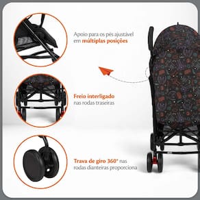 Carrinho de Bebê Guarda-Chuva Pipa Preto Neon - Voyage