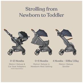 A cesta de armazenamento expansível comporta mais 22 do que a cesta de armazenamento Metro, o que significa mais mantimentos, bolsas e roupas que você não precisa carregar Acessórios incluídos são o porta copos que se adapta às suas necessidades, barra de suporte em couro sintético que se dobra com o carrinho e proteção contra intempéries para proteger o bebê das intempéries.