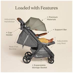Os tecidos são respiráveis e de qualidade selecionados para durabilidade e apelo luxuoso. O assento ergonômico e confortável tem reclinação quase plana e apoio de perna plano ajustável para tornar o tempo tranquilo em movimento confortável e fácil. O guiador é ajustável em altura e ergonomicamente projetado para melhorar a postura enquanto você empurra e permitir espaço para passadas maiores.