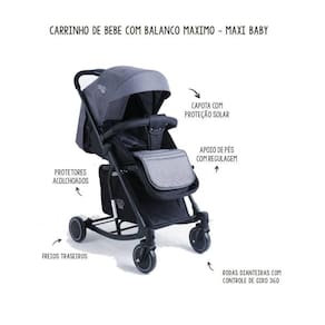 Carrinho De Bebê Passeio Vira Balanço Maximo Preto Maxi Baby
