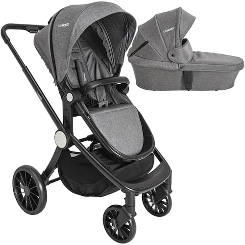 O Carrinho de Bebê Sunny está disponível nas versões Melange Preto e Melange Grafite.