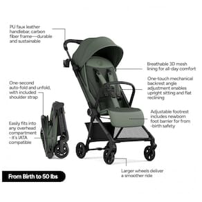 Equipado com assento ergonômico revestido por tecido em poliéster respirável com forro 3D, o carrinho permite reclinação ajustável até 170°, proporcionando posições desde sentado até quase horizontal para repouso. Conta com protetor para os pés do bebê, faixa segura para recém-nascidos e cinto de segurança de 5 pontos com ajuste fácil.