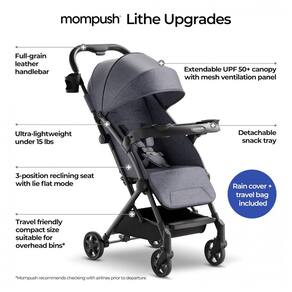 Carrinho de Bebê para Passeio Dobrável Ultracompacto com Assento Reclinável, Porta Copos, Bolsa de Viagem e Capa de Chuva, Mompush Lithe V2