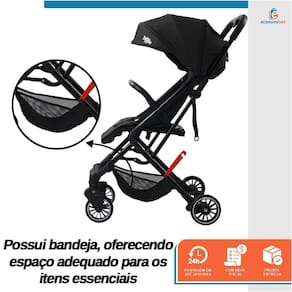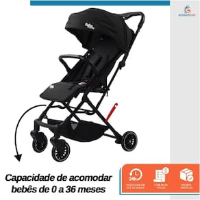 - Fechamento ultra fácil - Bandeja para bebê - Assento com encosto macio e reclinável, capota retrátil, - Cinto de 5 pontos, estrutura leve - Carrinho 0-36 meses - Aprovado pelo INMETRO