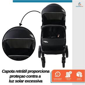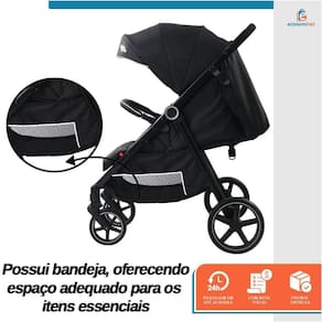- Fechamento ultra fácil - Bandeja para bebê - Assento com encosto macio e reclinável - Capota retrátil - Cinto de 5 pontos - Estrutura leve - Idade recomendada 0 - 36 meses - Aprovado pelo INMETRO