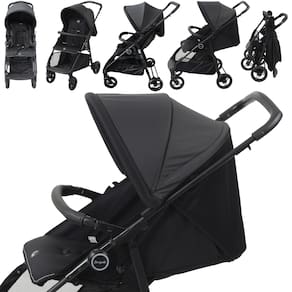 Além disso, o carrinho apresenta fechamento compacto, medindo 78 cm de altura, 55 cm de largura e 45 cm de comprimento quando fechado, facilitando o transporte e o armazenamento.